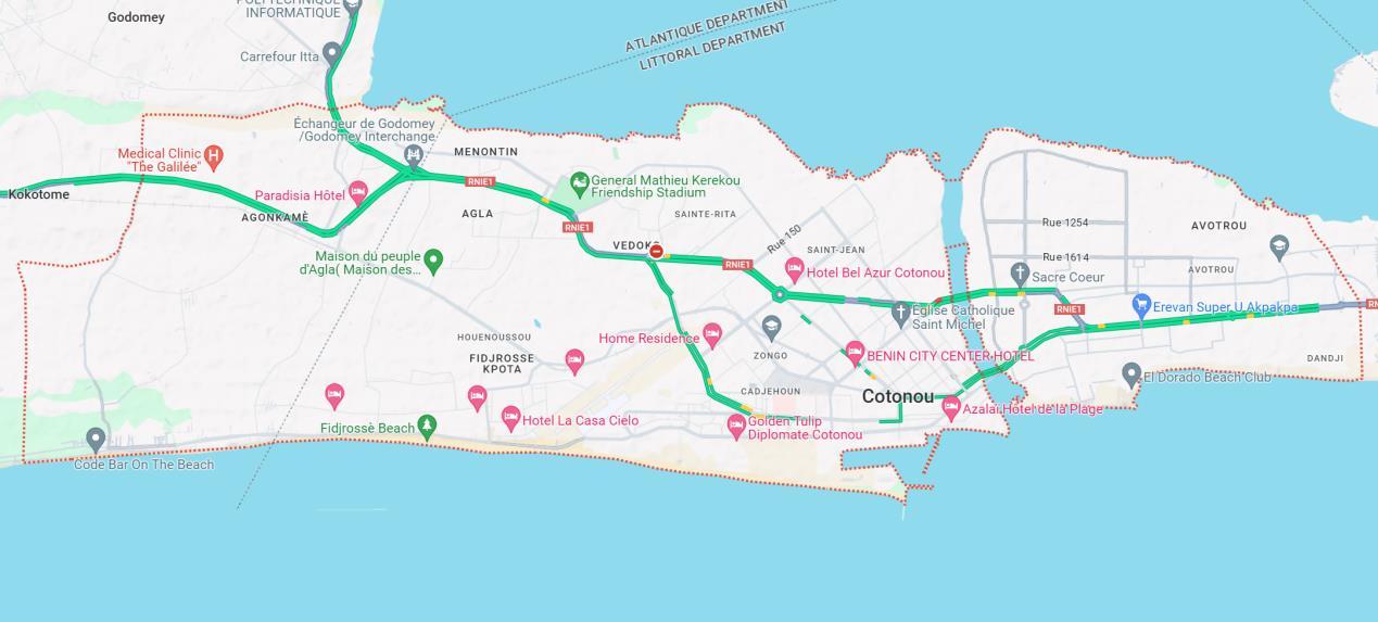 Cotonou is chosen as the optimal location for this study due to its status as the most densely populated city in Benin. Cotonou is located between the geographical coordinates of 6°20' to 6°23' north latitude and 2°22' to 2°30' east longitude[14]. The municipalityis the onlyadministrative subdivision within the Littoral Department. It sharesa border withthemunicipalityofSô-AvaandLakeNokouétothenorth,theAtlanticOceantothesouth,themunicipalityofSèmèKpodjitotheeast,andthemunicipalityofAbomey-Calavitothewest.Cotonouiscomposedof13districts,eachofwhichis dividedinto143citydistricts[15].Theregionhastwoseparateperiodsofrainfall,whichtakeplacefromApriltoJulyand from September to October. The overall amount of rainfall received year ranges from 800 to 1,200 mm (31 to 47 in). Moreover,Cotonouexperiencestwoperiodsoflowprecipitationknownasdryseasons.Thecityisaffectedbyharmattan winds from December to January. The temperatures exhibit a similar stability throughout the year, with the average highesttemperaturesconsistentlystayingaround30°C,andtheaveragelowesttemperaturesremainingaround25°C[16]