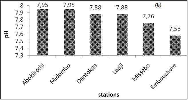 Figure 5. Variationsin(a)watertemperature(b)hydrogenpotential(pH)atthedifferentstations.Modifiedfrom Sintondjietal.[14]