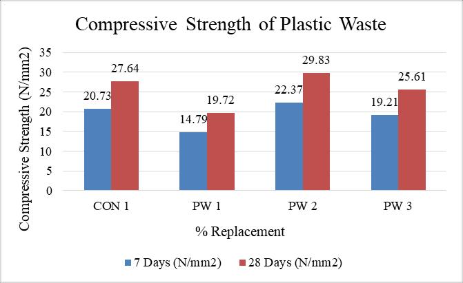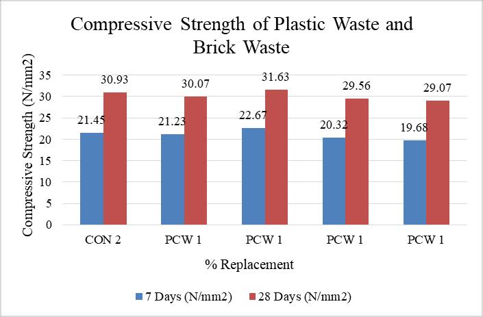 Chart -2:7Daysand28DaysCompressivestrengthof PlasticWasteandBrickwaste