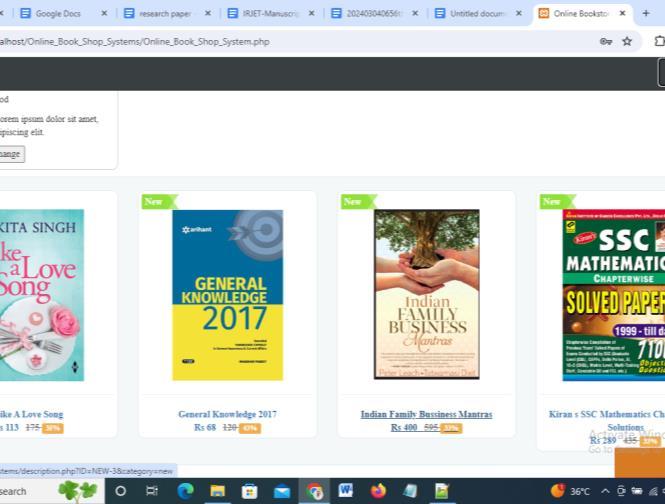 Focusing on contemporary trends, this section examines the emergence of online book marketplaces and the challenges they face in the digital age. It discusses issues such as competition, pricing strategies, customer experience,andtechnologicalinnovation.Byanalyzingthe dynamicsoftheonlinebookmarket,theresearchseeksto uncover opportunities for improvement and differentiation in the development of a book shop and exchangeplatform.