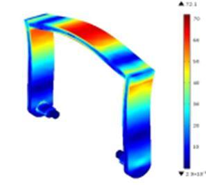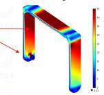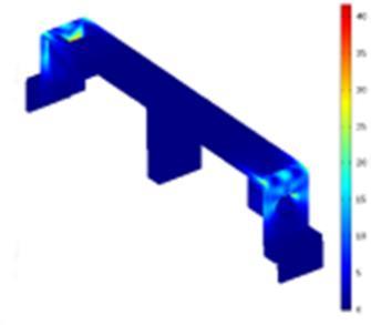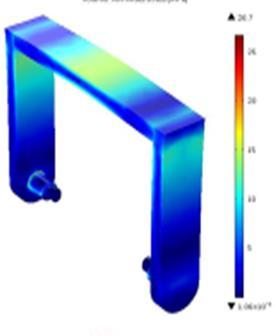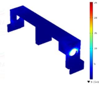 Intheabovecasethehandleofthebatteryisabouttobreak duetotheloadofthebattery.Needsomechangestohandle towithstandtotheloadofthebattery.Wecanobservein theaboveimagethatthemaxstressinthehandlehasbeen exceededtothebreakpoint.