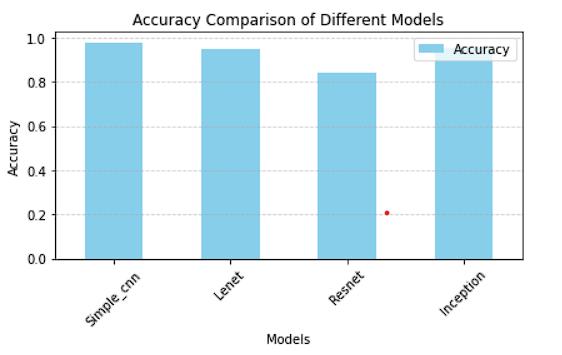 Four deep learning models were selected for experimentation: Simple CNN, LeNet, ResNet, and InceptionV3.