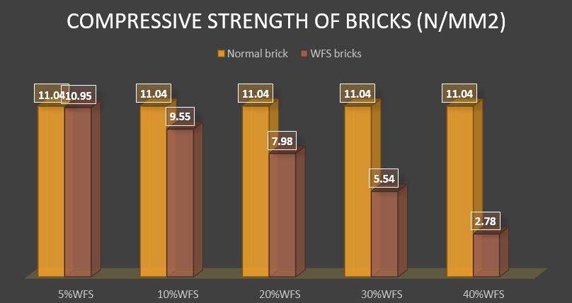 3. TheadditionofWFSreducedthebulkdensityofthe bricks, which has also caused reduction in compressive strength.Thereductioninbulkdensitycanbeattributedto thepoorpackingabilityofbrickscontaininghighercontent ofWFS.