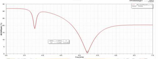 Asystem'sorantenna'sabilitytoreflectpowerbacktothe source is measured by its return loss. It resembles the quantity of signal that is reflected back rather than sent forward. The aforementioned result suggests that the antenna exhibits perfect radiation since the return loss is relativelysmallattheradiatedfrequencyof5.2GHz.
