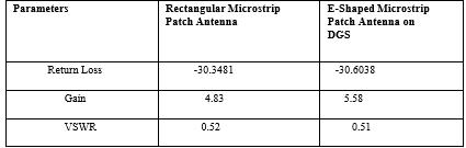 With a phenomenal return loss of -30.6038 dB and an operating frequency of 5.2 GHz, an E-shaped microstrip patch antenna edge-fed with defective ground structure (DGS) performs very well in small wireless communicationsystems.