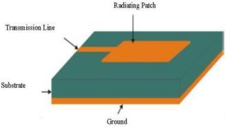 Whenscientistsdiscoveredthatabouthalfofthepowerin amicrostripradiatorescapesasradiation,theyunderstood the significance of microstrip radiators. Consequently, microstrip antennas were characterized as a microstrip emittingpatchwithasignificantradiationloss.Subsequent researchdemonstratedthatthediscontinuitiesateachend ofthemicrostriptransmissionlinewerethesourceofthis radiation process. A patch antenna's fundamental design consists of a flat plate placed over a ground plane and a dielectric substrate. Copper foil is often used to make the metal patch, however other forms of substrate material maybeusedinstead,dependingonthesituation.Asseenin Fig., the three layers are the bare minimum required to describeapatchantenna.