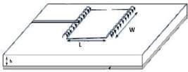According to the transmission line concept, the rectangularpatchantenna,asseeninFigisaparallelplate transmission line connecting to radiating slots that are each width W and height h. The charge is dispersed throughoutthegroundplaneandthepatch'sbottomwhen it is stimulated by a feed line. The attractive forces between the ground plane and the patch's bottom tend to storealotofchargeatanygivenmoment.