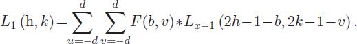 The*istheconvolutionoperation. x ∈{1, 2, 3, ·· ·,X}, X isthetotalamountoflayersoftheGaussianpyramid. F (b,v)is(2d +1)×(2d +1)Gaussianwindow,whichcan bedefined