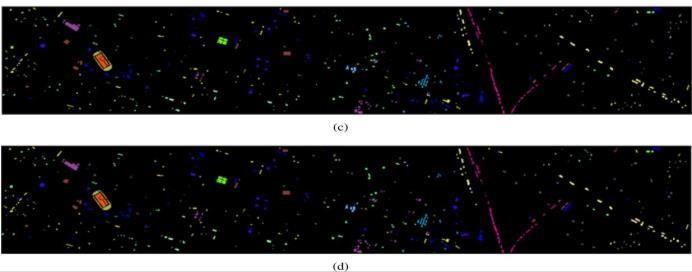 Fig. 11. ClassificationmapsfromtheproposedDRBRESNETandthebaselinesontheHoustonData. (c)SSUN: 97.21%.(d)DRB-RESNET:99.34%.