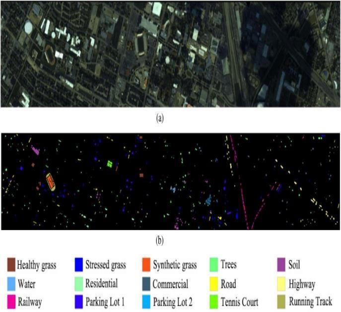 Fig. 5. For experimental datasets. (a) False-color image oftheHoustondata.(b)GroundtruthoftheHoustondata.