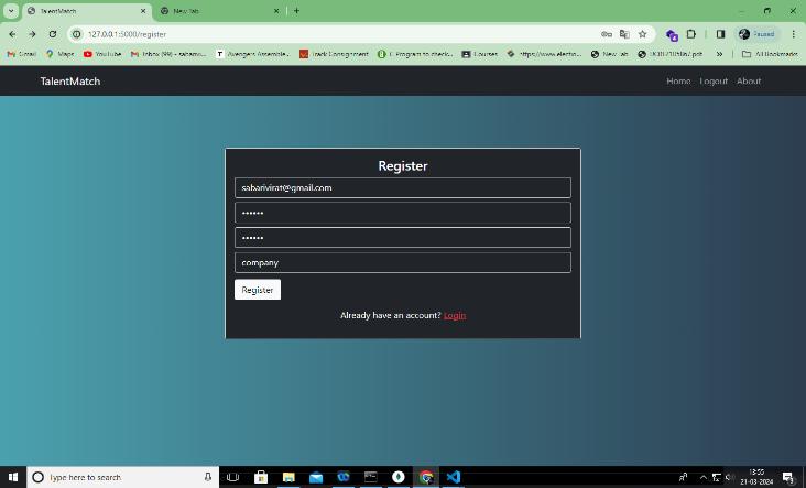 Newrecruitersbegintheuserloginprocessbyregistering through a form, providing email, password, and confirming password. They select between company registration, input necessary details, and upon successful registration, are directed to the login page. Here, users access their profiles and associated functionalities by enteringtheiremailandpasswordasgiveninfigure6.