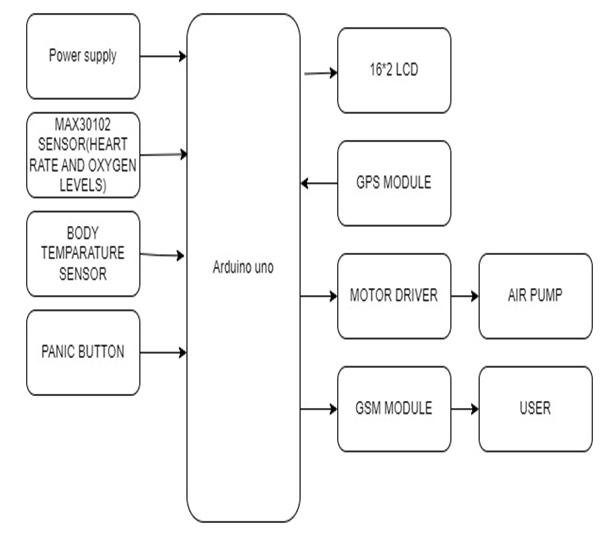 The heart rate will be tracked by this system. The detecting range would be between two and four meters while submerged in water. Both transmitting and receivingcircuitsarepartofthissystem.Thepersoninthe water is the transmitter circuit, and the lifeguard is the receiver circuit, which provides information about the individual'sheart rate. An LCDscreen isinterfaced with a microprocessor from the AVR family in the transmitter circuit. 12V batteries are used to power the transmitter circuit. Similar to this, the receiver circuit has an RF receiverandmicroprocessorfromtheAVRfamilythatare connectedtoa12Vtransformer.Aheartratesensorisalso includedinthesystem.AbuzzerandanLEDlightarealso included in the receiver circuit. The transmitter block is madeupofanLCD,a push-buttonswitch,anIC regulator, a cardiac sensor, an RF module with an encoder and transmitter, and a battery. This battery is rechargeable, meaningthatitchargestoitsmaximumcapacitywhenthe mainsupplyisONandservesasabackuppowersourcein theeventofapoweroutage.