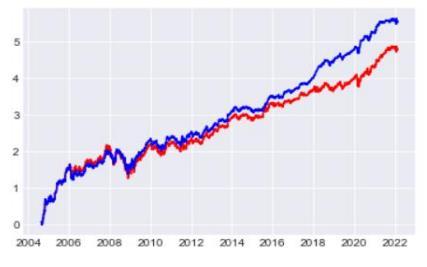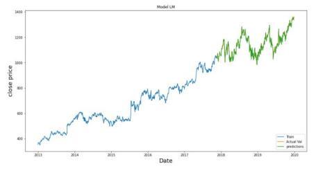 The stock graph is visualized using the Python matplotlib tool.Thegraph(Fig.12)belowisproducedbycontrastingthe connecting the expected price using the linear regression approachwiththerealprice.