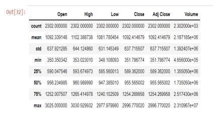 Theyfinancedatathatwasusedwasavailableincsvformat, whichthepandassoftwarewasusedtotransformintoadata frame. After sorting the data, the null Values were eliminated.