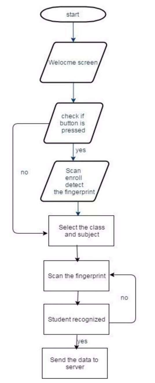 The attendance system of a classroom incorporates the concept of lots. To achieve this, a portable module has been developed that can identify students through their fingerprintsandtransmitthestudent'sIDtotheserver.In orderforthesystemtofunction,aninternetconnectionis necessary, which can be established using Wi-Fi. To cater to this requirement, a board (P6951) has been selected that supports Wi-Fi connectivity. Upon powering on the system,itautomaticallyscansforavailableWi-Finetworks and prompts the user to enter the password for the desired network. Once connected, the system proceeds to scan for fingerprints using the fingerprint module r-305 and identifies the corresponding student. The fingerprint ID of the recognized student is then sent to the server (PC). When the server receives the fingerprint ID, it recordsthestudent'sattendance.