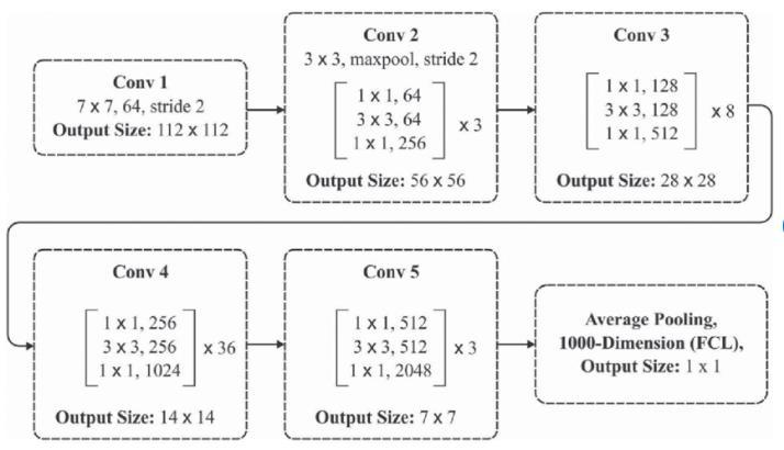 ResNet152 stands as a pinnacle in the realm of deep convolutional neural networks (CNNs), particularly renownedforitsunprecedenteddepthandgroundbreaking architectural innovation. Developed by researchers at Microsoft Research, ResNet152 introduced the concept of residuallearning,whichrevolutionizedhowdeepnetworks aretrained.Fig4showsthearchitectureofResNet152.