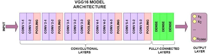 VGG16isaconvolutionalneuralnetworkarchitecturethat gained prominence for its simplicity and effectiveness in image classification tasks [19]. Developed by the Visual GeometryGroupattheUniversityofOxford,VGG16consists of 16 layers, including 13 convolutional layers and 3 fully connectedlayersasshowninFig3.