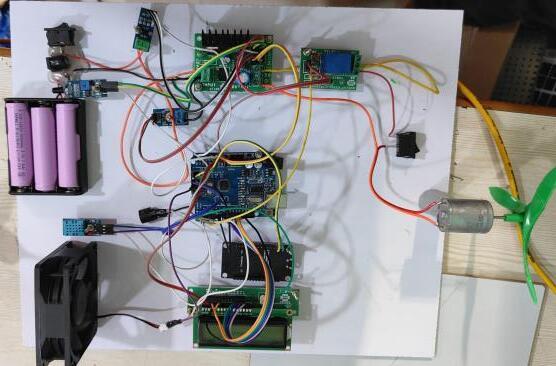 whichcollectsandprocessestheinformation.Anaudible alarmistriggeredtoquicklyalertkeystakeholdersifany sensor value exceeds specified thresholds, signaling potentialconcerns.Inaddition,thesystememploysaDC motor that is controlled by an automated procedure to reducehightemperatures.Whentemperaturesriseover permissiblelevels,theDCmotorkicksintohelpcoolthe battery and keep it working optimally. Battery health and safety are ensured through proactive monitoring andintervention.