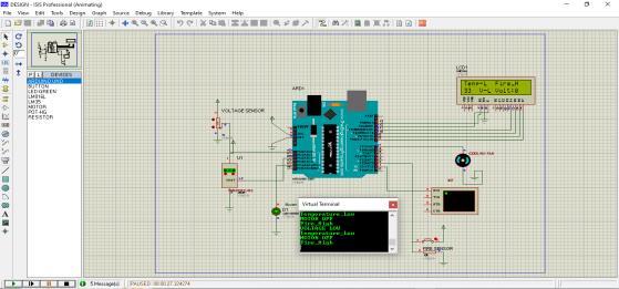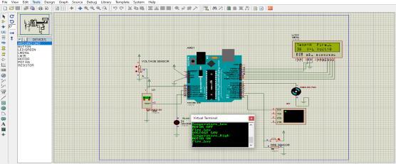 The all the sensors values are normal level. And the sensors values update on the LCD and IOT. The simulationimageincludeonthefig.13.