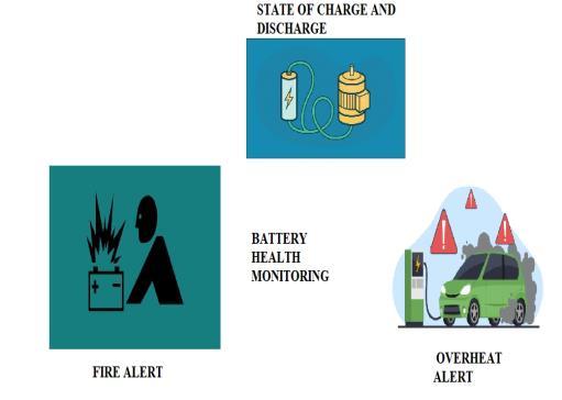 intervention to prevent failures, extend battery life, and improve performance by continuously reviewing these characteristics.However,thewidespreaduseofbatteries causes environmental issues such as premature deterioration, fire and overheating hazards, and the generation of electronicwaste,the environmental needs image on the Fig.2. Because premature battery degradation needs frequent battery changes, it shortens battery life and efficiency while increasing electrical waste. Furthermore, disposing of used batteries contributes to environmental degradation, while safety issues such as overheating risk both human health and the environment. Battery health monitoring systems assist in solving these challenges by providing real-time information on battery performance and condition. Battery health monitoring systems can help alleviate environmental hazards associated with battery consumption by implementing advanced monitoring techniques and intelligent management mechanisms. Temperature, voltage, and current levels can be monitoredinreal-timetoaidinearlyanomalydetection and action, preventing catastrophic failures and safety hazards.Furthermore,byapplyingmachinelearningand predictive analytics, these systems can enhance energy usage patterns, increasing battery life and reducing the need for replacement. Furthermore, battery health monitoring systems reduce electrical waste by enabling proactive maintenance and repair, thereby promoting sustainable battery management practices. Beyond reducing waste and enhancing safety, battery health monitoring systems have a positive environmental impact. These systems help to increase the adoption of renewable energy sources and reduce greenhouse gas emissions by improving battery efficiency and dependability. Optimized battery performance, for example, leads to increased energy efficiency and less relianceonfossilfuelsinelectricvehiclesandrenewable energy storage systems, lowering their negative environmentalimpact.