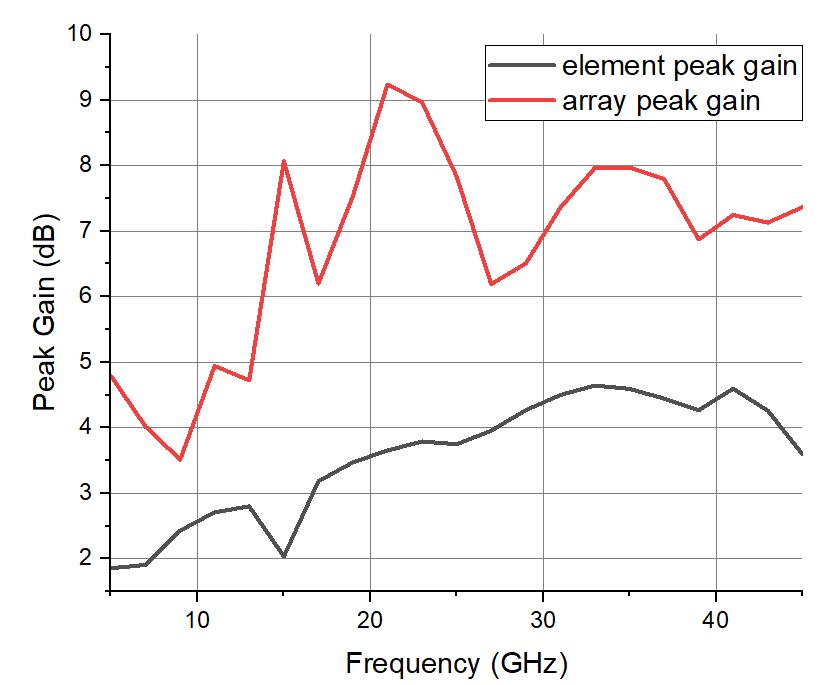 Figure 7:SimulationresultsofUWBunitandarraypeak gain.