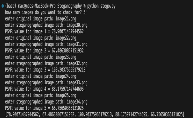 Figure 1: Image showing the peak signal-to-noise ratio (PSNR)oftheoriginalimageandthesteganographedimage.