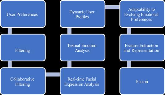 • Dynamic User Profiles: Combining methods forms dynamic user profiles, integrating current emotionalstatesandpastchoices.Profilesareregularly updatedwithchangingemotionalreactionsfromtextand facialexpressionanalysis.