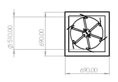 Forthemodel,anaxialfanischosenoveracentrifugalfan due to its lighter weight and suitability for low-pressure, high-dischargeapplications.Axialfanspullairalongthefan shaftandblowitalongtheaxisoftheshaft.Whenselectinga fan, factors such as volumeflow rate, pressure, and brake powerarecrucialperformancemetricstoconsider