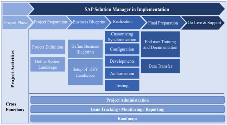 The five primary stages of the Accelerated SAP Model (ASAP) constitute a phase model. Project planning and preparationoccurinthefirststage."BusinessBlueprint"is the second step that lays out the criteria for the business. Phasethreeentailsconfiguringthebasesystem,settingup system administrators, planning interfaces, and converting data. Phase four entails training staff & conducting final system tests. Last but not least, there is constantsupport&systemcheck[10].