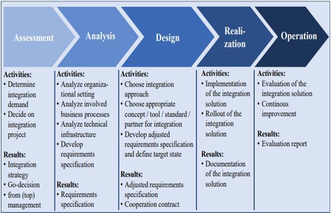 A literature review forms the basis of Nedbal's process model. The model's stages are not sequential but rather overlapandcanberearrangedasneeded.Thefirststepis toassessthecurrentstateofaffairsandestablishthemost important goals. Analyzing information systems, current businessprocesses,ortechnical infrastructuresis done in the second phase to determine the current status. Choosingappropriateideas&resourcesistheemphasisof the third stage. The technical implementation happens in the fourth step. We present the integration strategy and develop the integration solution that is ready to be used. Evaluationoftheintegrationsolutionisthelaststepinthe