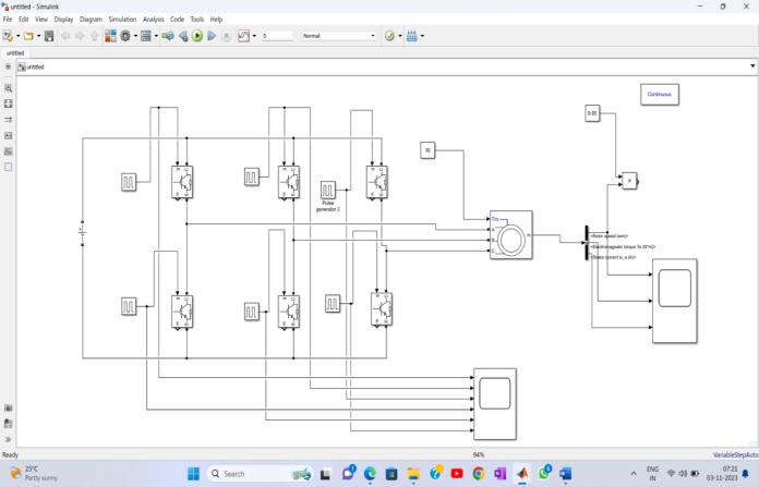 Whenthesupplyfromthedcvoltagecoppersisconnected as integrated from the IGBT switches of pulse generator connected with chopper linked a conversion of ac source controlled by rectifier Increasing voltage from the jerky motion of rotor speed either low and speed reduces the losses Pulse generating for electrical operation thyristor switchingandcontrollingtheusingfrequencyoperated of fedinductionmachine.Voltagesourceisusedtocontrolthe