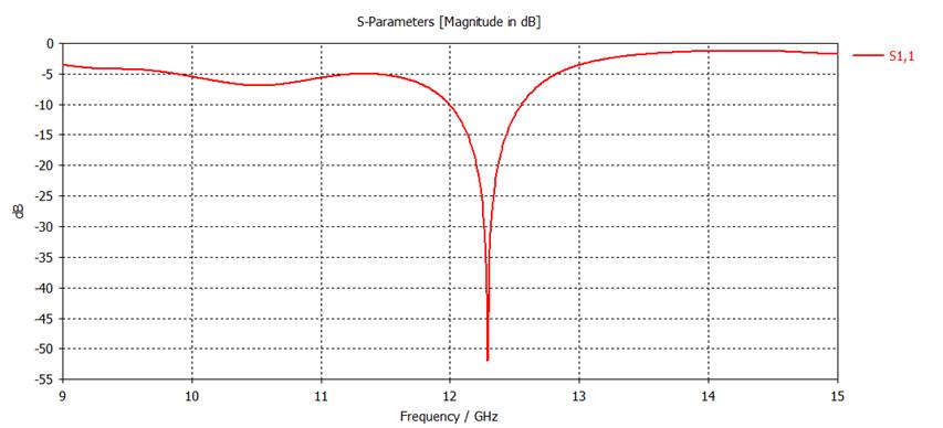 constant.Theonlymodificationisthattheantennaisnow shieldedwithapolyethylenesubstrate.Theantennaisused for single band antenna with an improved bandwidth of 44.80%forfrequencyrange(12-12.55)GHzandtheoverall directivity is also increased which is better for communicationapplications.Thisantennaoffersprotection againstenvironmentalfactorssuchasrain,whichcanmake it wet and heavy. When it becomes wet, the change in its dielectric constant alters its properties, subsequently affecting the antenna's overall performance. Importantly, this antenna is well-suited for Internet of Things (IoT) applications.