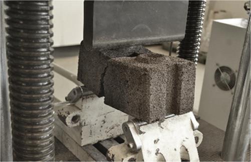Thecompressivestrengthtestforlightweightinterlocking compositeblocks(LICBs)evaluatestheirabilitytowithstand axialloads.LICBsareplacedbetweensteelplatesandloaded untilfailure,followingIndianStandardIS516:1959.LICBsin thisstudyweremoldedinsteelformsandcuredfor28days inwater,meetingIS1077:1992specificationsforcommon burnt clay building bricks. Evaluating the compressive strengthofLICBsisessentialtodeterminetheirqualityand applicability in construction. In this research, around 100 LICBunitsweretested.ThemethodologyfollowedtheBSEN 772–1 guideline (British Standard Institution, 2011). To guarantee uniform compression, each sample was capped withasteelplateonbothsides.Priortotesting,thesamples wereoven-driedfor24hourstoensureaconsistentmass. The strongest block recorded a compressive strength of 18.21N/mm²,achievedthroughmanualcompressionwitha highrateandvibrationduringthecompactionprocess.This highpressureledtotheproductionofmorerobustmasonry units.Thestudyalsofoundthatbrickswithdeepergrooves weremorepronetofailureundermaximumloadduetothe increasedstressconcentration