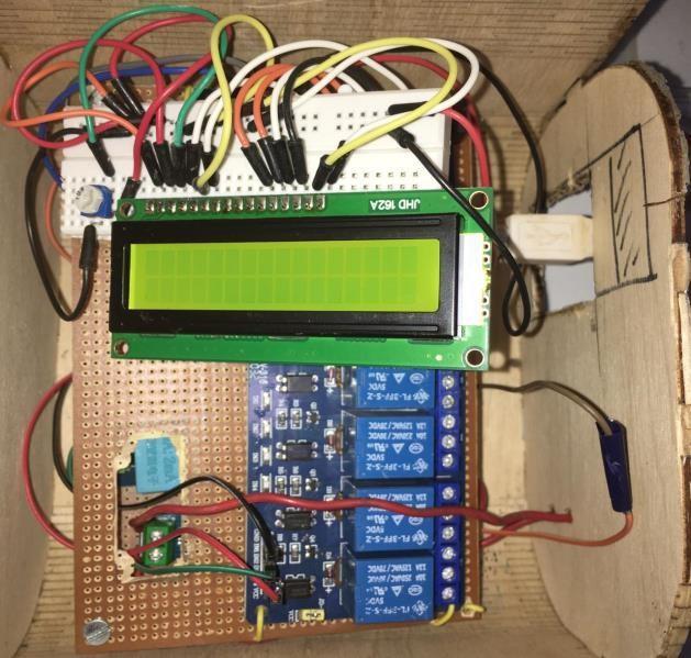 Figure5.1showsthecompletedcablinginourproject.ESP8266isthe brainofour projectasithandlesthecontrol and monitoring part of the system. The 16-way relay module is connected to the MCU node and is used to initiate the load connection,thatis,toturntheloadconnectiononandoff.ACcurrentsensor.