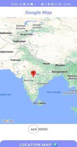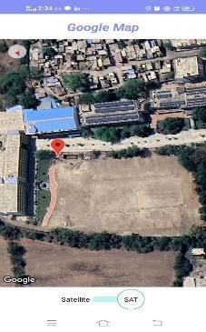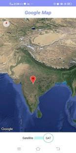 This passage describes a screenshot, most likely captured from the Google Maps app. The image displays a satellite view map of India, showcasing geographical features like waterbodiesandpotentiallyevensome buildingoutlines. A red pin strategically placed on the map highlights a specific Indian city or location. Text labels reading "in Google Maps" and "Satellite" situated below the time and map indicators confirm that you're viewing the map in satellite mode on Google Maps. Additionally, a white search bar with a magnifying glass icon resides in the bottom left corner, providing users with the ability to search for specific locations on the map. Reinforcing the idea that this is a Google Maps view, a small grey Google logositsunobtrusivelyinthesamecorner.