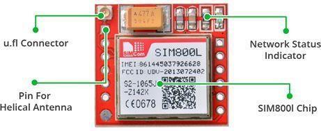 SIM800L GSM Module: Thismodulecommunicateswitha microcontrollerviaaserialUARTinterfaceandrecognizes AT commands. It enables functionalities such as sending/receiving text messages, making/receiving calls, connectingtotheinternet,andreceivingFMsignals.