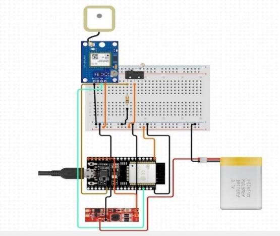 GPS Module: Gives real-time area information to the ESP32microcontrollerbymeansofaserialinterface(e.g., UART). Sends exact topographical facilitates of the user's currentarea.