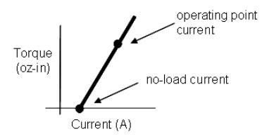 Motor load current is the sum of no-load current and loadcurrent.Fora DCmotor,theoutputtorqueisdirectly proportional to thecurrententering the motor, regardless of motor speed. The straight line between torque and currentisthetorque-currentcurve,asshowninfigure17. Thisfigurehasbeendrawntomatchfigure18.
