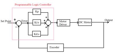 Key Words: PMDC motor, Programmable Logic Controller, PID Controller, DC drive, HMI Monitor, High SpeedCounter,GMWINProgramming,MATLABSoftware