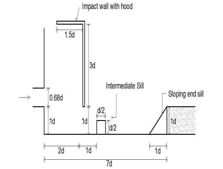 Variousdevicessuchasimpactwall,intermediate and end sill etc. are used to make the stilling basin more efficient(Tiwarietal.2014).Theeffectofthesillontheflow orscourcharacteristicsdependsontheconfigurationofthe sill,itsgeometryandtheflowregime,Negm(2004).Various types of stilling basin models recommended for pipeline releases are by Bradley and Peterka (1957), Fiala and Maurice(1961),Keim(1962),VollmerandKhader(1971), VermaandGoel(2000and2003),Goel(2008),Tiwarietal. (2011, 2012, 2013, 2014 and 2015), Tiwari and Gahlot (2012),Tiwari(2013Aand2013B),TiwariandGoel(2014