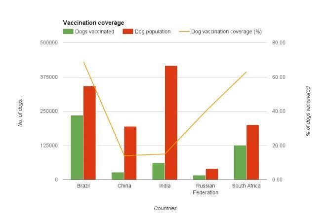 FIGURE 2:India,among the BRICS Nations,boasts the largest population of dogs and ranks among the Lowest in terms of vaccination rates.