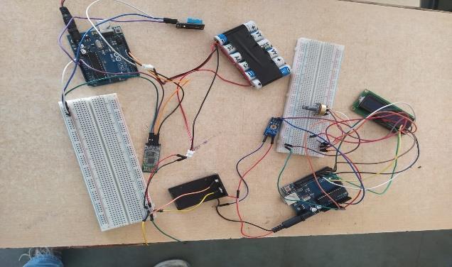 Figure 4 showcases the various sensors used for the application of the project such as DHT-11 Temp and Humidity sensor, Bluetooth HC-05 Module, Voltage sensor(Vcc<25V),lcdmodule