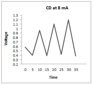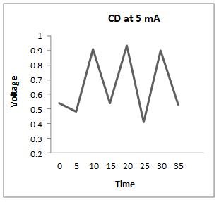 discharge is about 1.1 V, and the device's current is 5 mA. From all the parameters, it is clear that by using different activematerials,substratesandelectrolytecombinations,the performance of the electrode can be increased by functionalizingtheactivematerial