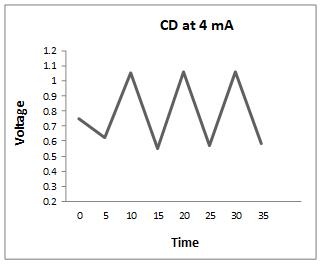 Thecharge-dischargeiscarriedoutat4,5,8,and9mA,and theresultsareasfollows