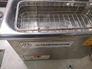 Theflexiblesteelisfirstlycleanedusingzero-numberpolish paperbeforeundergoinganyfurtherprocess.Afterwards,it is cleaned using distilled water in the ultrasonicator, as shown in the picture. Again it is sonicated in the ultrasonicatorusingacetone,ethanolanddistilledwater.