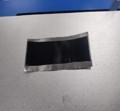 The coating of active material is done on the flexible steel substrate using a hot vacuum rolling coater machine. The cleanedsubstrateisplacedasshowninthepicture,andthe vacuumisturnedonsothesubstratecanbestuckflatonthe surface.