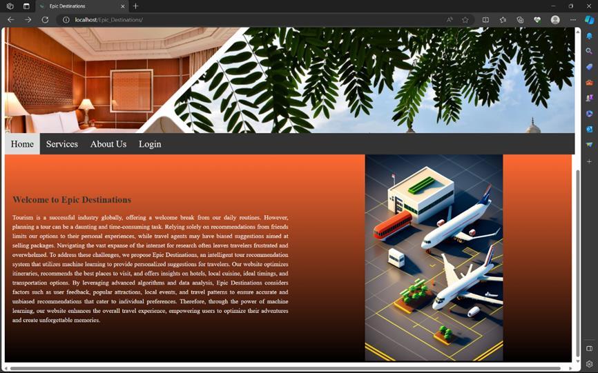 Inthispaperweimplementedusersacomprehensiveand personalized travel planning experience. By providing customizedrecommendationsbasedonseasonsandoffering insightsintolocalcuisineanddiningoptions,weensurethat travelerscanmakeinformeddecisions.Thesystem'srealtimeadaptabilitythroughuserratings,combinedwiththe user-friendlyinterface,furtherenhancesthetravelplanning process. This approach not only supports personalization andimpartialityintravelrecommendationsbutalsoensures thatuserscanenjoyamoreenrichinganduser-centrictravel experience. We look forward to continuing to refine and expandourplatformtofurtherservetheneedsofourusers intheirtraveladventures.