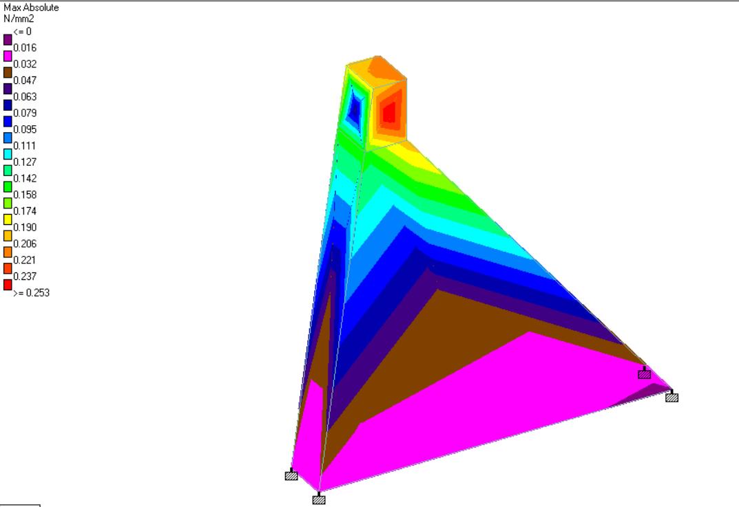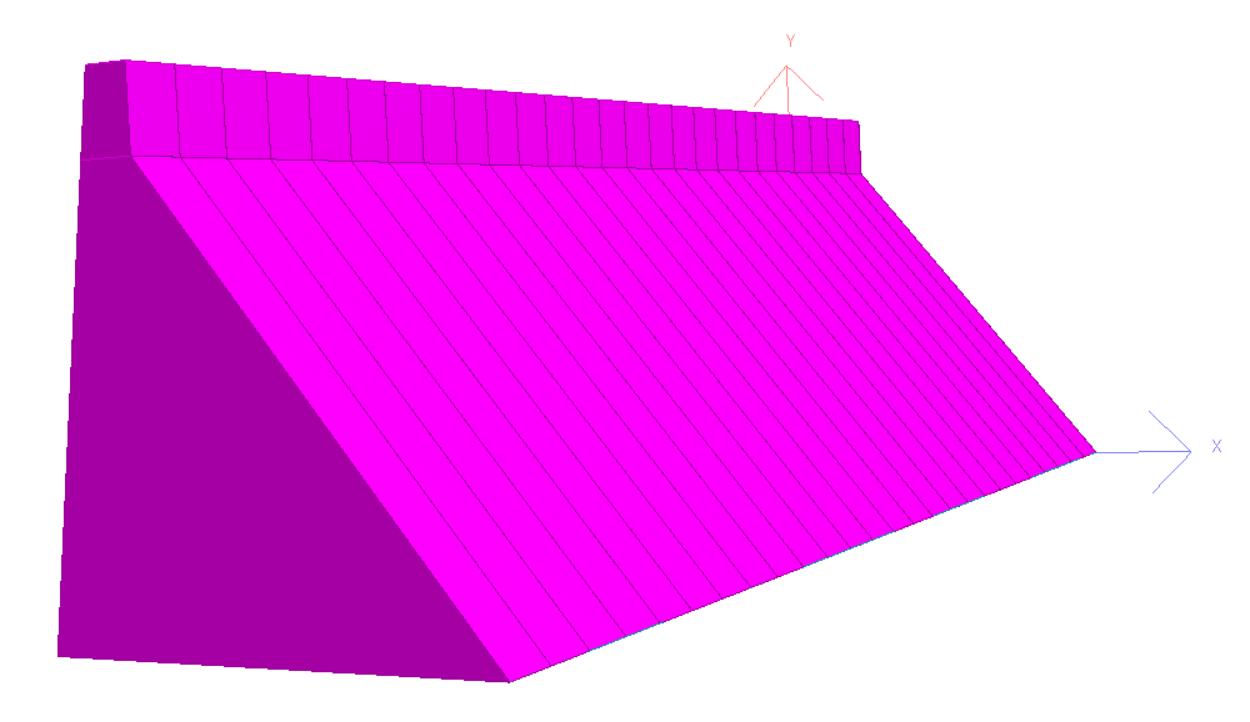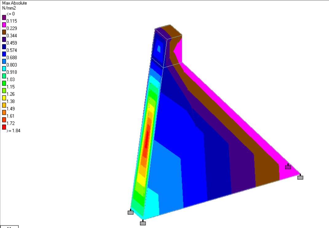 2.2 Water Pressure: Waterpressureisalevelconstraintthatactsonthedaminatriangularshape.Nopressureisappliedby thewateratthesurfaceofthereservoirandthewaterappliesthemostextremesumweighttothedamatthefoot(atthetoe).