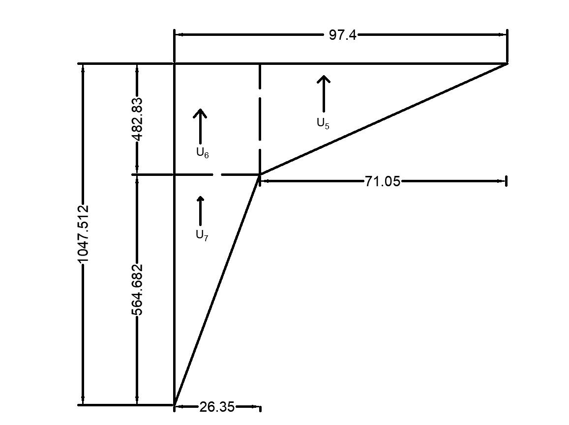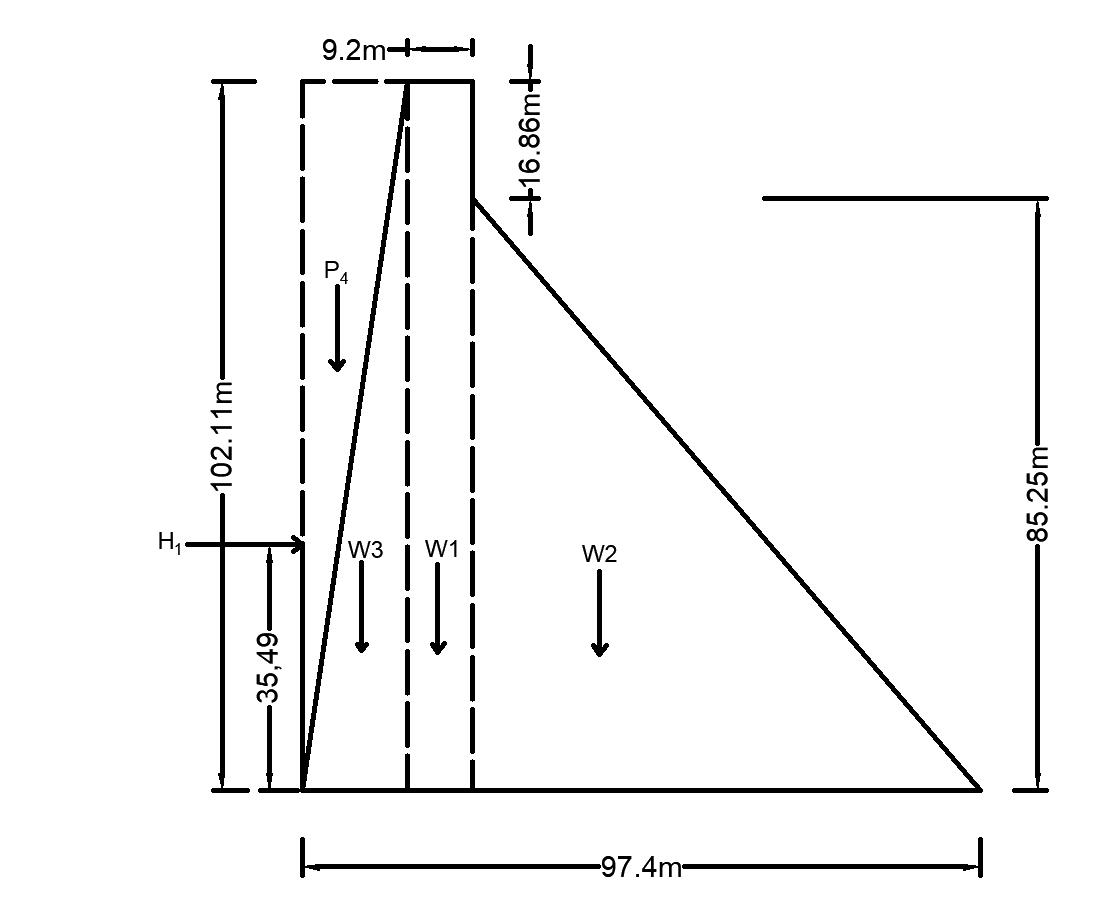 Thevaluesofverticalforces∑V2andmoments∑M2havebeenworkedoutinTable1wherethe∑V2and∑M2speak totheentiretyofverticalforcesandentiretyofmomentsofallforceswhenthereservoirisfullbutwhenupliftisnotacting.