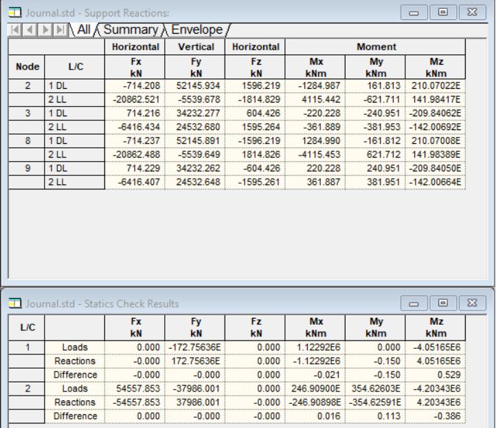 Mentioned, acquired forces, moments, deflections, element, and node count are used.
